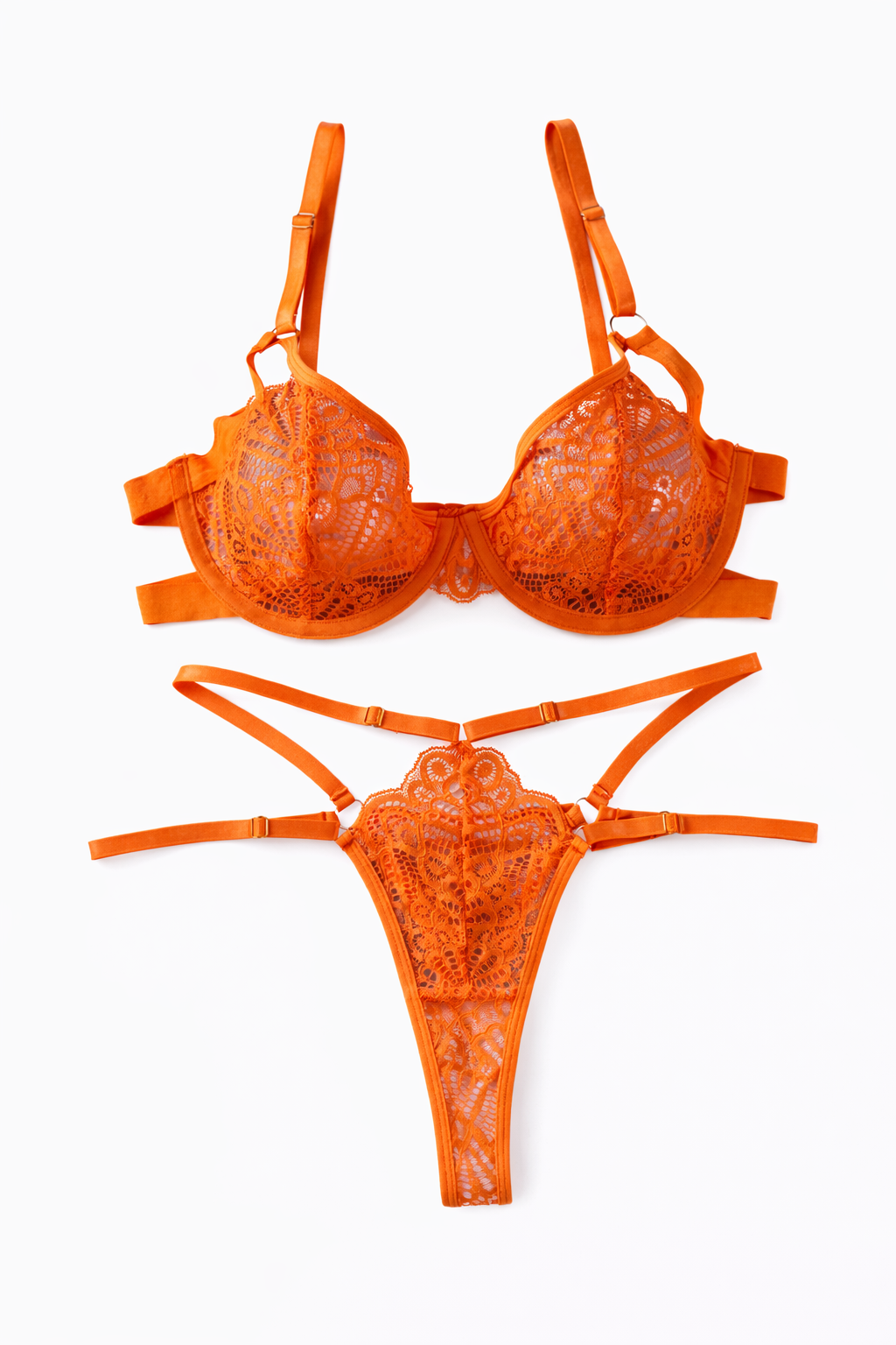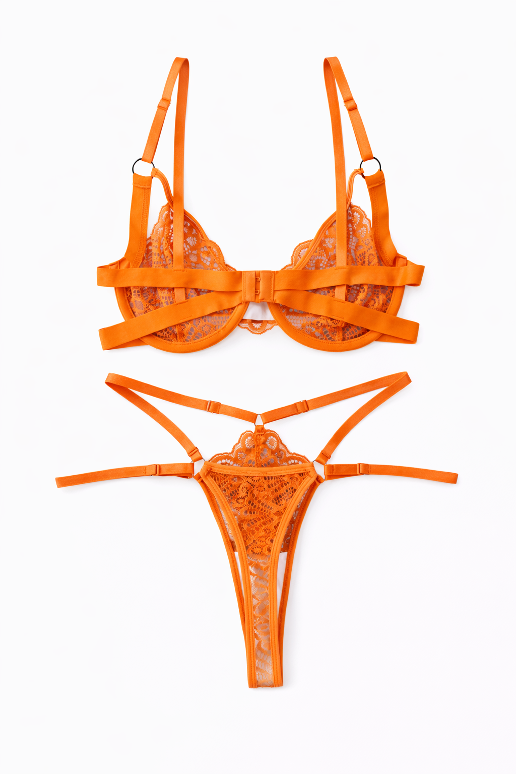 Conjunto de lencería de encaje con un diseño elegante y tiras ajustables para realzar tu figura