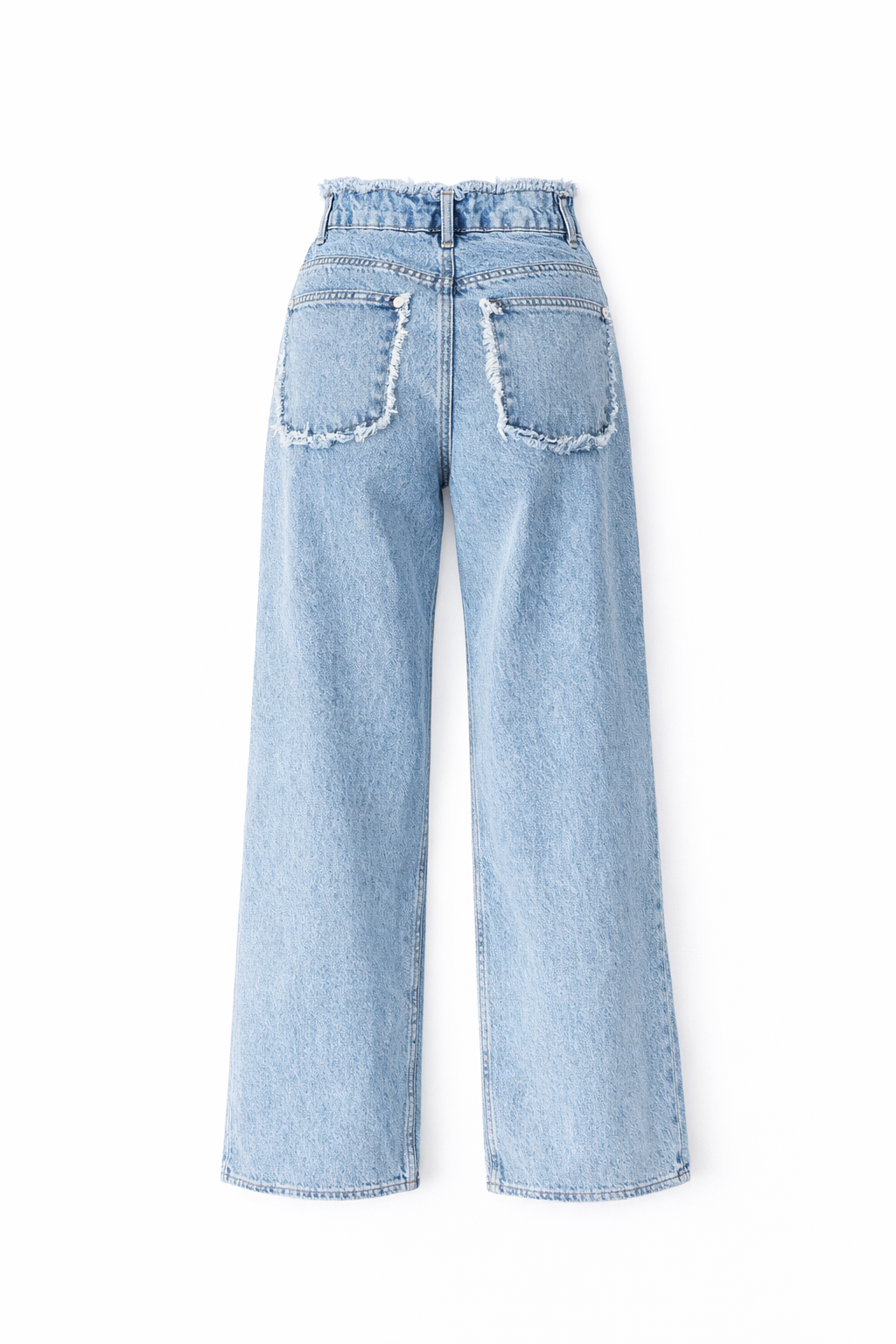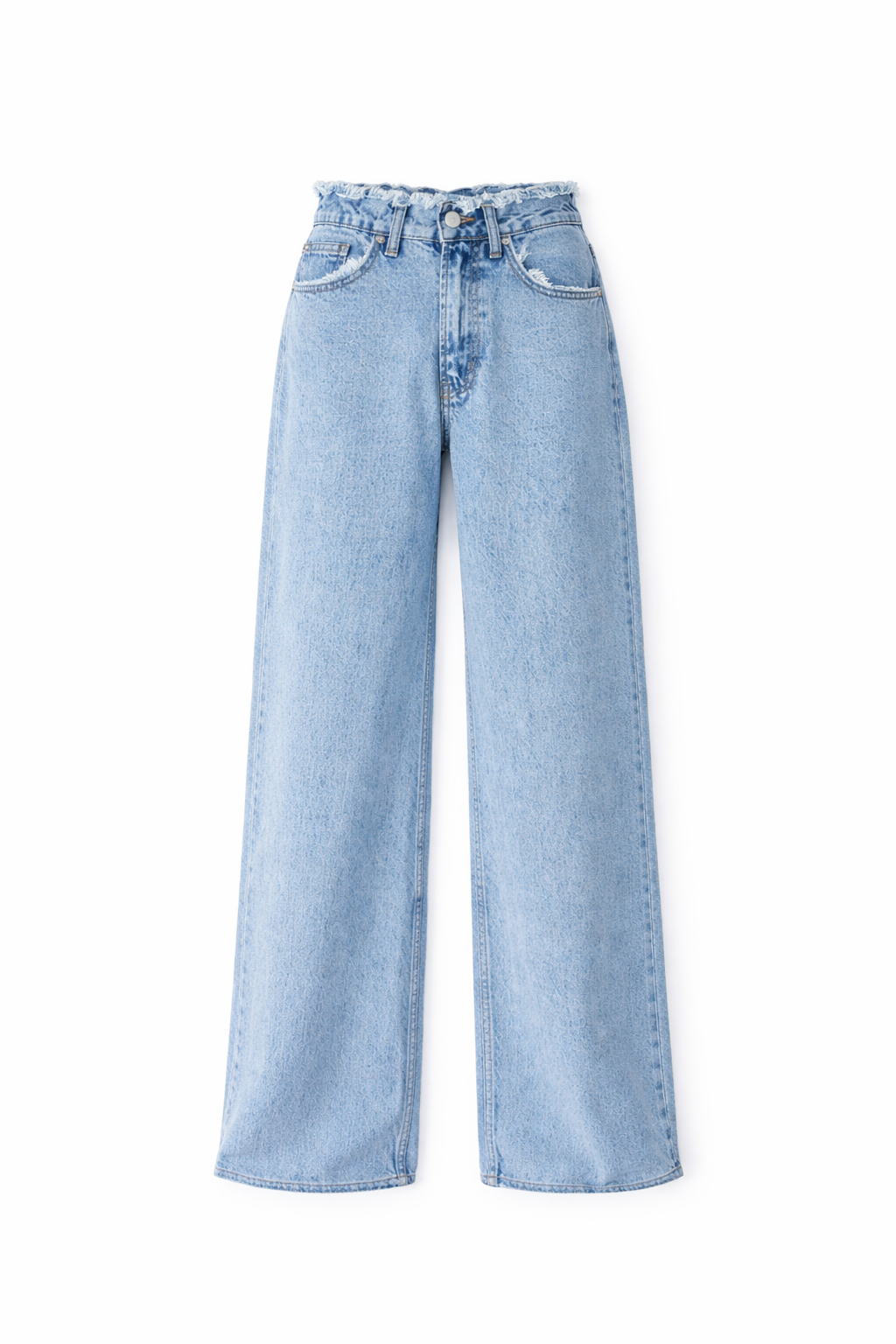 Jeans tiro alto. Confeccionados en denim claro combinan comodidad y elegancia.